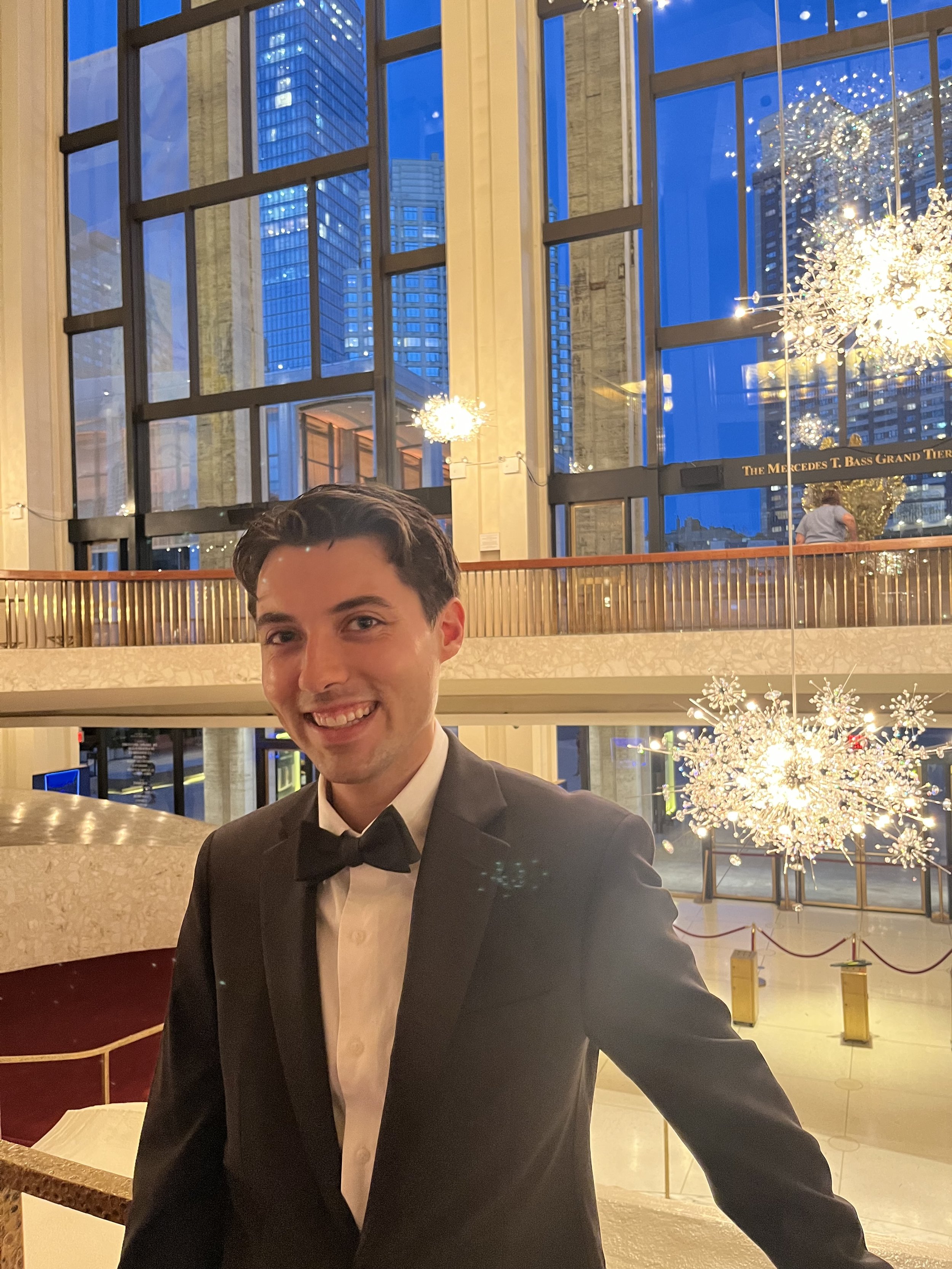 He currently serves as the Executive Office Internship at the Metropolitan Opera, working on a team of executive assistants to Peter Gelb, General Manager of the Metropolitan. In this role, he provides efficient and reliable administrative assistance in organizing travel accommodations, daily schedule management, artist relations and executive liaising, greeting and escorting guests, and large projects such as company holiday and artist gifting. He maintains this role from September 2025 to June 2026, for the full 25-26 season.